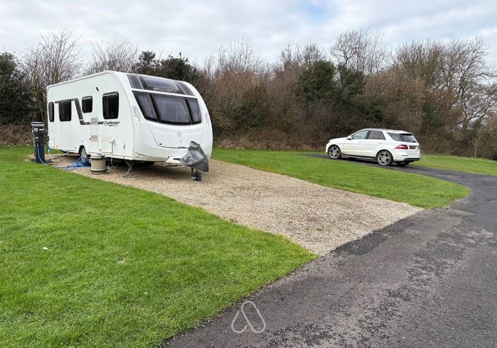 This is truly a 5* site. Large pitches with full service points. Hard standing but also a grass area. Fab shower and toilet facilities. Grass is manicured and well looked after by a team of robot lawn mowers. There is a lovely play area for kids. Great site for people with dogs as there is a fantastic area for walking them on site and you could walk 5 kn without going over same ground. There is access to the walk across a small stream and the edges of the field have been cut creating short grasses pathways. There is also an indoor dog wash for whe. It’s muddy. Reception is great with helpful staff and a small shop with local produce and essential items for sale.there’s a lounge area with a coffee machine. Area is great for walking with a pub serving food 1.5 miles away. Our caravan is now in storage and will be visiting many times. Thirsk and Northallerton are a short drive away.