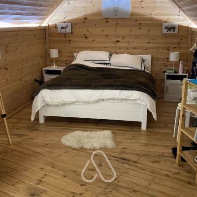 Gingerbread Cabin sleeps up to 2 adults and 2 children (1 x king size bed and 2 x single futon beds). The cabin has lighting, heating, electric sockets, a fridge and cooking facilities (2 ring hob and microwave) as well as a woodburner. We also provide kitchen and cooking equipment (plates, cups, cutlery, pans, etc.) Don't forget your bedding (pillows, sleeping bags or duvets and sheets), towels and tea towel. Please note, there is no running water to Gingerbread cabin.