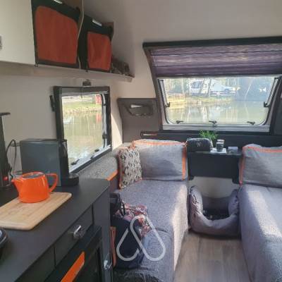 Situated on the pond edge and sleeps 3. Our Glamping Cabin has the added luxury of an ensuite shower, toilet and basin.
