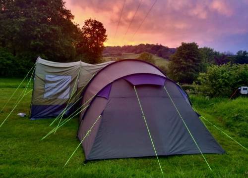 Small hiking tents only, which can be carried in a rucksack, up to a maximum size of 3m by 2m with a maximum of two people and small vehicle.