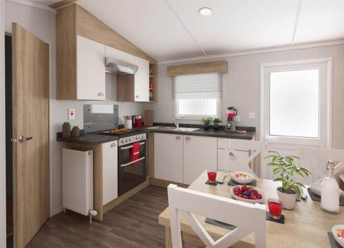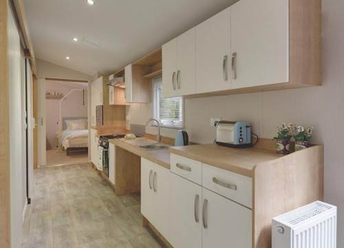 Our 3 bedroom luxury caravans sleep up to 6 people across one double and two twin bedrooms, and have a family bathroom. These caravans come with double-glazing and central heating, a spacious open plan sitting area and kitchen. Style and layouts may vary.