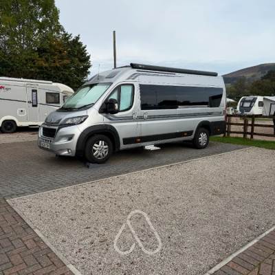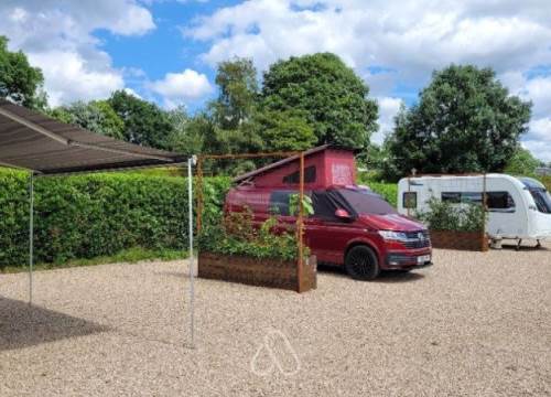 Maximum 5 metre Campervan situated in the camping field. Non electric. No drive away awnings.