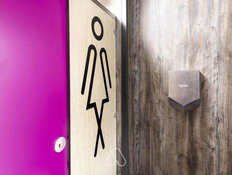 In the ladies toilets there are more hair dryers along with pay plugs for hair straighteners or other electrical goods, situated in the vanity area. There are also individual vanity cubicles with sink and mirrors for more privacy. A disabled shower and loo washroom with radar key access is also on site. Should guests not have key for this, they are available in the office.