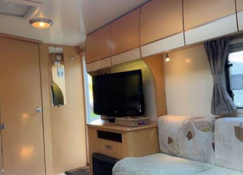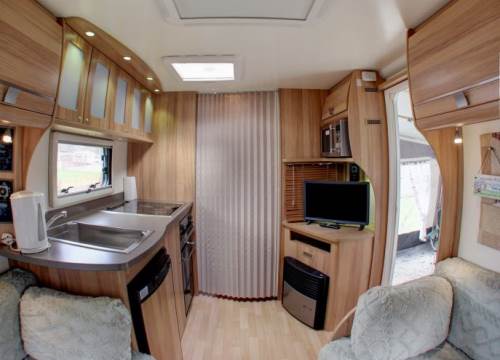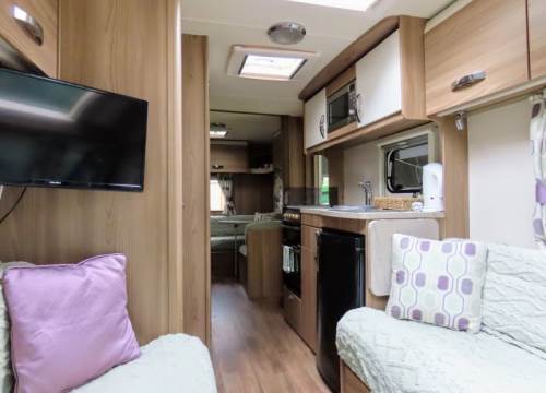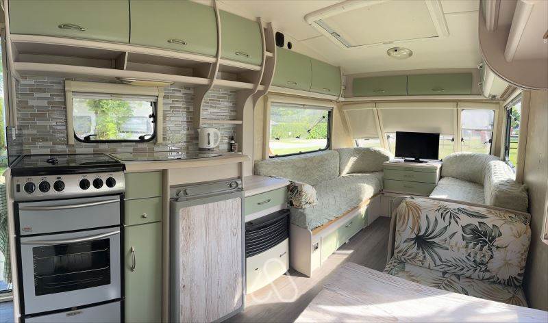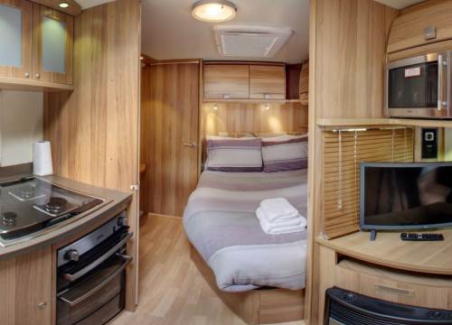 As the day winds down, curl up on the comfortable sofa and enjoy the soothing sound of rain on the roof while watching your favourite TV shows. When it’s time to turn in, the fixed double corner bed promises a restful night’s sleep—no need to make the bed, it’s all ready for you. Yenga also boasts a generous awning, offering a brilliant outdoor extension to your living space. Whether you’re dining under the canopy, kicking off muddy boots, or tucking bikes and walking gear out of the way, it’s the perfect spot to enjoy fresh air without giving up your creature comforts.