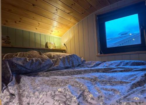 Features a comfortable double bed for a peaceful night's sleep and a delightful log burner in the living room, creating a warm and inviting atmosphere. One double bed that sleeps 2 adults with bedding included.