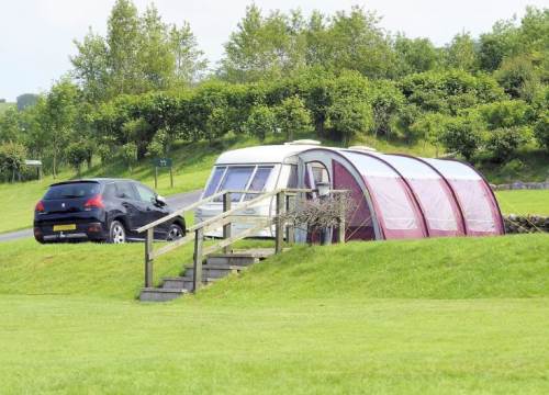 The park offers two types of pitches: 'Standard electric,' equipped with electric hook-ups, and 'Deluxe,' which includes electric hook-ups along with water and waste points. All pitches feature flat, hard-standing surfaces with space for one car and an awning. Many pitches offer stunning views, and returning visitors often request their preferred spots.