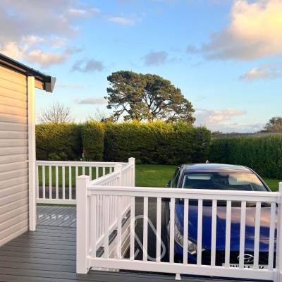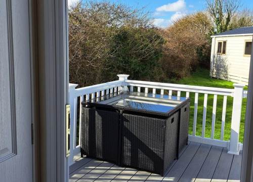 The holiday caravan has decking with an accessible ramp and wide walkway. The decking is South facing making the most of the Cornish sunshine throughout the day and evening.
