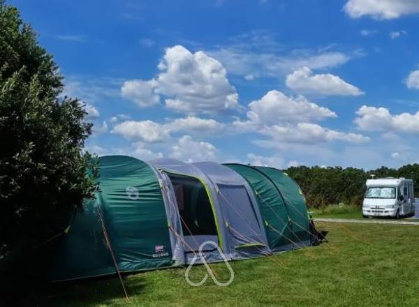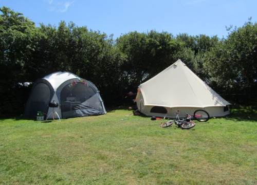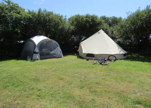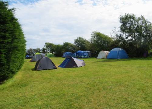 Each pitch is spacious and on level ground. There are several water points, and every pitch is situated against hedging to provide shelter. Our camping pitch sizes are 11m wide by 8m long. If your tent is on the large size, please either add a note of the total size during the booking process, or contact us prior to booking, so we can ensure you are sited on an appropriate pitch before arrival.