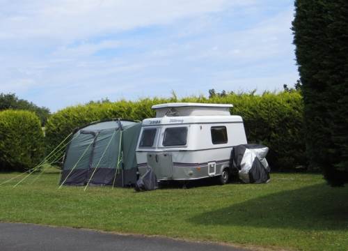 Suitable for caravans, reasonably-sized motorhome and campervans, our grass touring pitches are located in the centre of our holiday caravan field on pitches A to F - see our site map. The pitches are level, measure 11m by 10m and have 10 amp electric hook up included in the price. We cannot accommodate very large motorhomes and RV’s, neither to we have drive-over grey waste facilities for motorhomes.