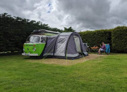 Suitable for caravans, reasonably-sized motorhomes and campervans, all our pitches on the touring field are spacious and have gravel hard standings for your vehicle and awning, plus a grass area. We cannot accommodate very large motorhomes and RV's, neither do we have drive-over grey waste facilities for motorhomes.