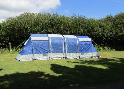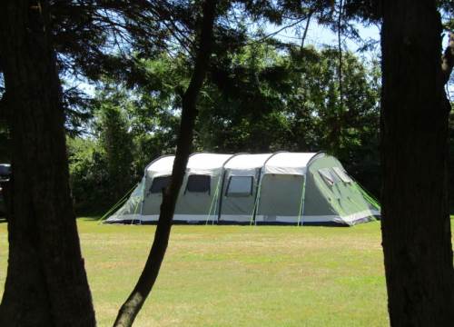 Our camping field is suitable for tents and trailer tents, and each pitch is spacious and on level ground. There are several water points, and every pitch is situated against hedging to provide shelter. Our camping pitch sizes are 11m wide by 8m back to front, providing space for your tent, guy ropes and one car. If your tent is on the large size, please either add a note of the total size during the booking process, or contact us prior to booking, so we can ensure you are sited on an appropriate pitch before arrival. For very large set-ups you may need to get in touch about booking 2 pitches.