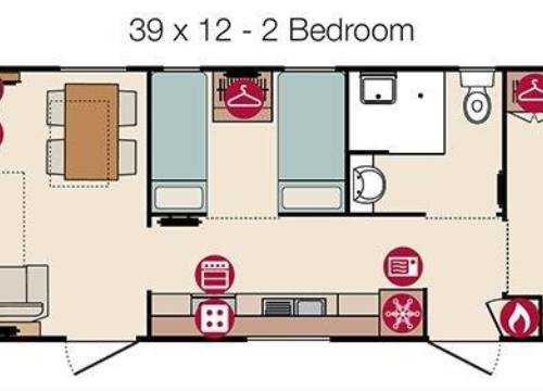 This spacious 12 foot wide model provides everything you need for a comfortable stay with modern furnishings. Sleeps 4 - double and twin bedrooms.