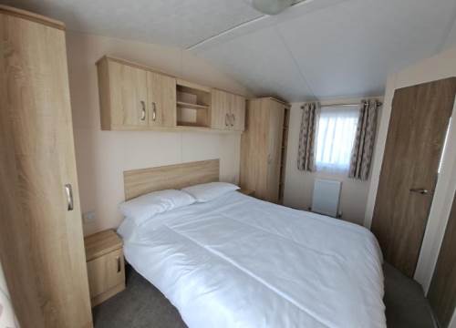 This holiday caravan is suitable for having a travel cot in the main bedroom.