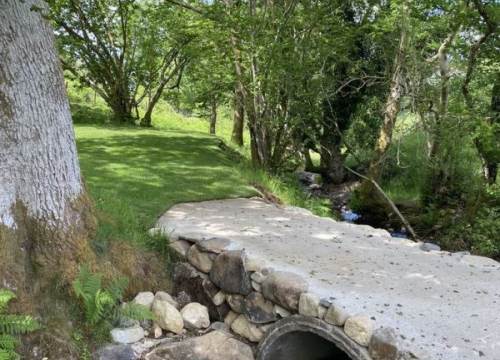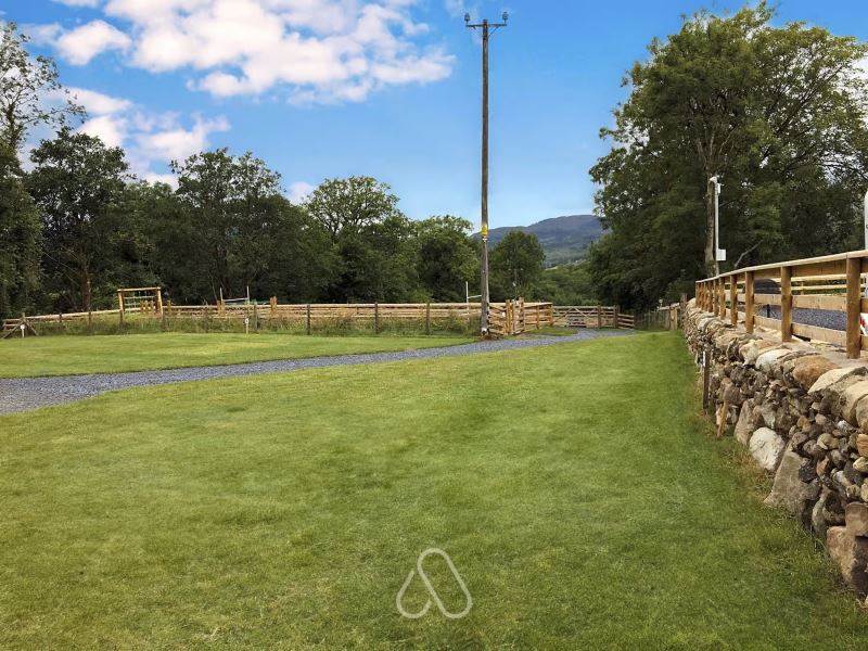 Dros y Bont pitches are across a small bridge covering a stream. Cars are not permitted over the bridge, parking is required in front of the bridge.