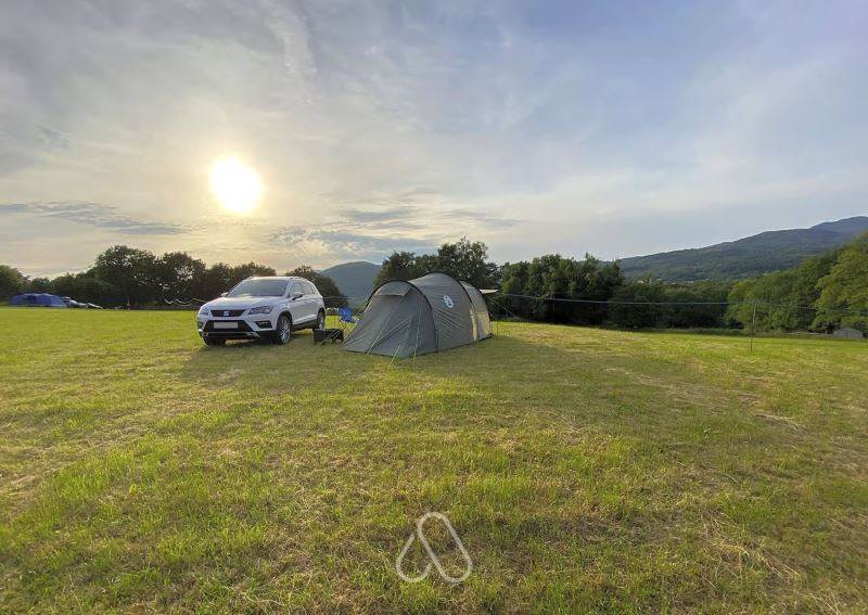 Wild camping pitches located opposite the campsite entrance, across the lane from the campsite facilities. Parking is not available on the pitches.