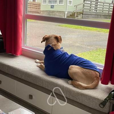 Spacious caravan with king size bedroom, en-suite shower room and separate dressing room. Dog friendly.
