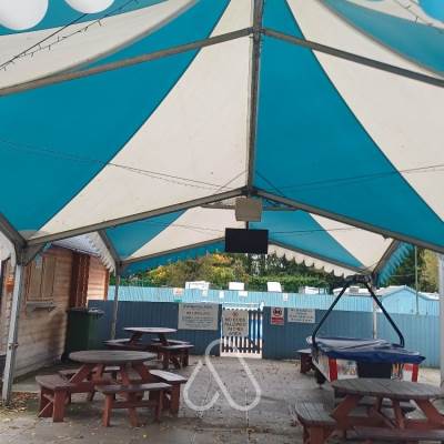 The total pitch size is 10m long x 9m wide, all items must be within this area. But as the ground is soft. The car is parked on hard standing, instead of on the pitch as normal.