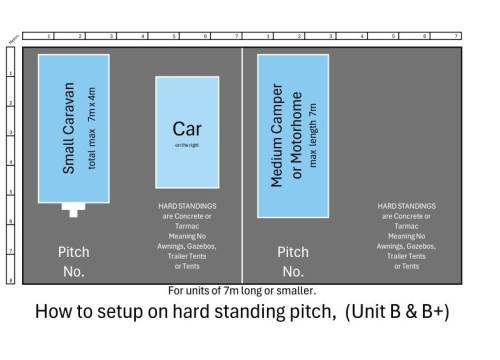 As these are hard standing pitches, No Awnings, Tents, Trailer Tents or Gazebos are allowed.