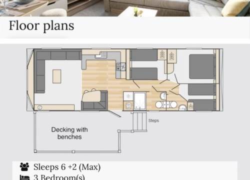 Holiday Home with decking, table & chairs, HD-TV, fridge freezer. So all you need is food, towels & tea towels. Price includes 6 people and a car.