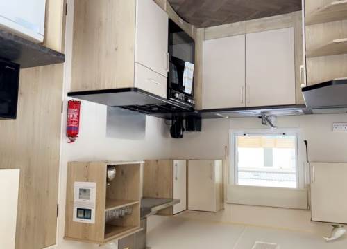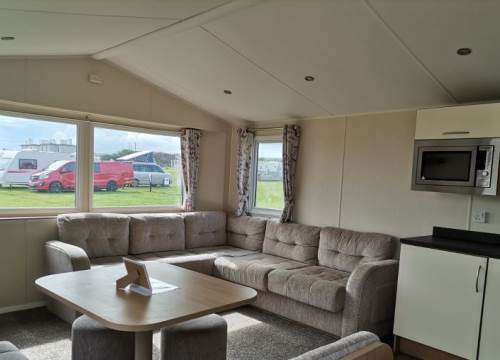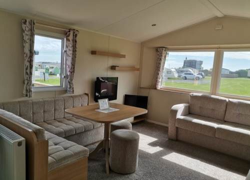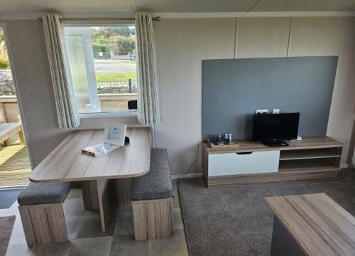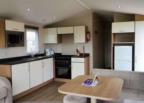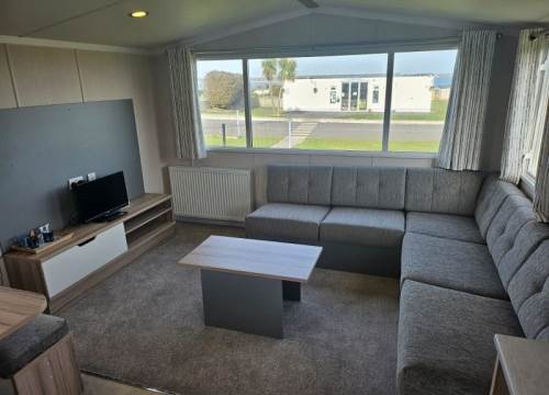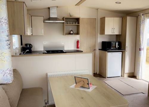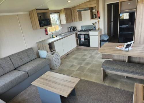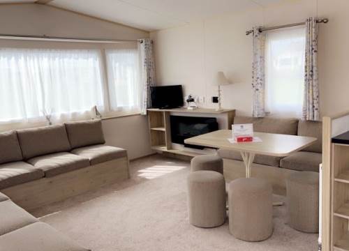 The dining room and spacious lounge area is open plan with gas / electric heating. They are fully serviced with a fitted kitchen, TV , fridge, gas cooker, oven grill. All mobile home rentals come fully equipped with cutlery, crockery and cooking utensils and each has its own supply of hot water, shower and toilet facilities.