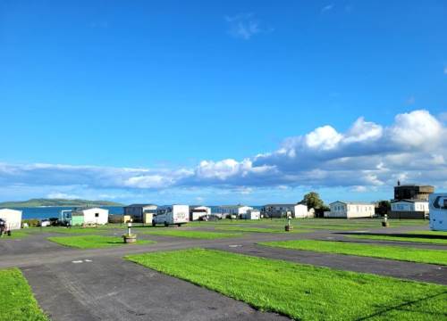 The park caters to touring enthusiasts with hard-standing and grass pitches featuring 10-amp electric points. A park map assists guests in selecting their preferred pitch. Lambay View Touring pitches are suitable for touring caravans and motorhomes, with awnings permitted.
