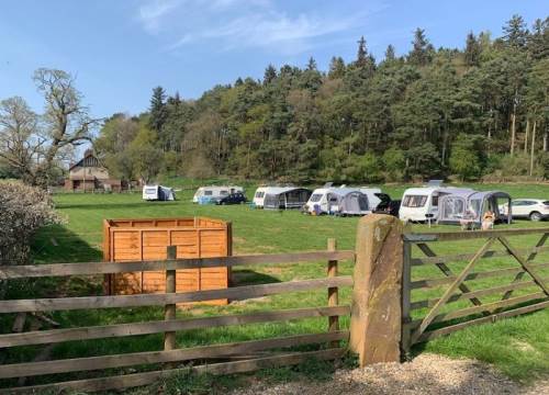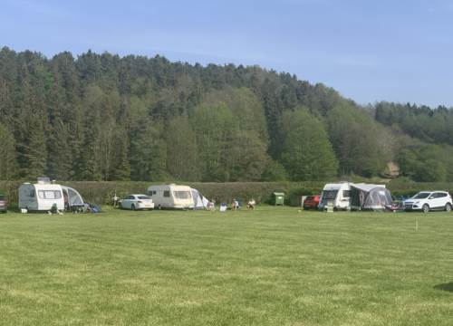 12 spacious flat pitches – magnificent views over the fields to The River Eden – 200m away