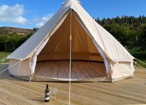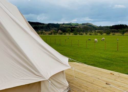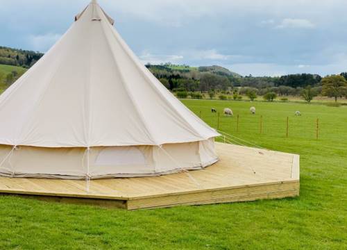 Our Tipi Tents are available from May until the end of September and have uninterrupted views of the river Eden. The Tipis are made from cotton and have a raised decking area.