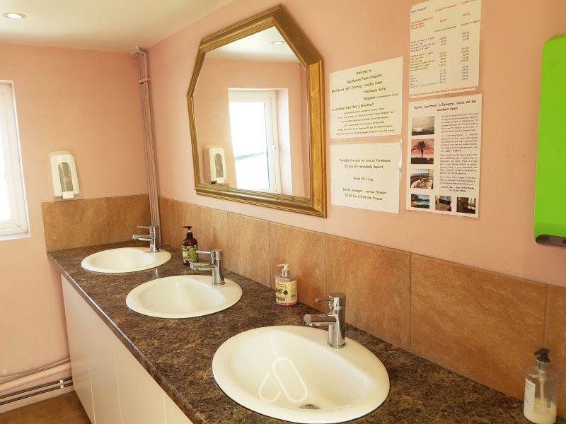 The campsite's facilities are thoughtfully designed to enhance the overall camping experience. Three centrally heated shower and toilet blocks, along with a purple wet room, ensure that campers have access to clean and comfortable amenities. The daily cleaning and replenishing of showers and toilets reflect the campsite's commitment to maintaining high standards of hygiene. For those needing to attend to practical matters, a well-equipped laundry room with a fridge freezer and indoor and outdoor sinks is available. Additionally, a hose on the farmyard facilitates the cleaning of muddy dogs and boots, demonstrating the campsite's attention to detail and camper convenience.