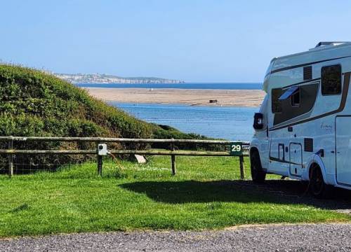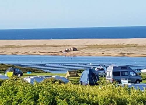A fantastic site with an enviable view over Fleet Lagoon and Chesil Beach. Good facilities and well laid out pitches made for a very enjoyable stay. Myself and my partner walked our kayaks down to the lagoon from the site and spent a delightful couple of hours on the water.Billy Winters café on the front was cracking as was the nearby tarmac cycle path (Rodwell Trail) into Weymouth.We will be back!