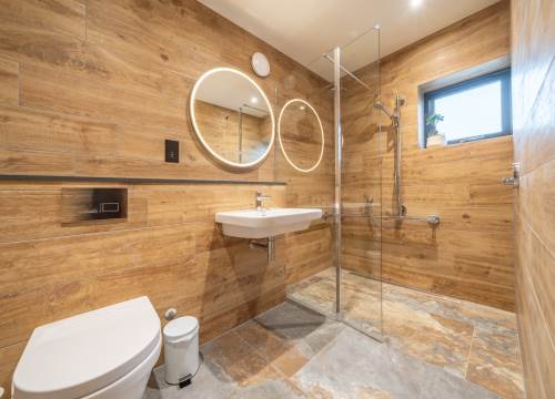 - Double bedroom with a kingsized bed and en-suite wet room with shower, WC and hand basin.