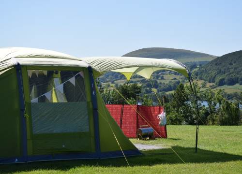 Situated above Sandall field & reception, amazing views of the lake & fells. Toilets located in this field; showers are above reception or in Sandall.