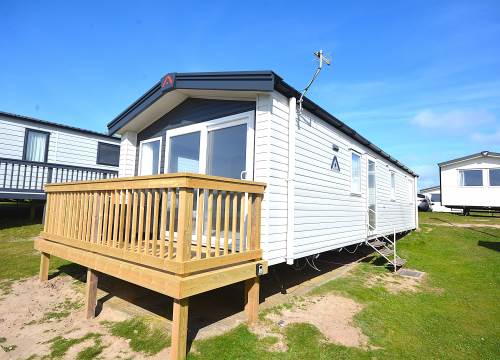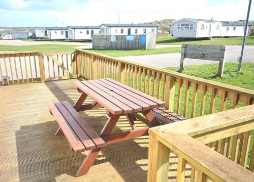 A luxury, Prestige with Decking caravan, extremely well appointed inside. In an excellent end position and very close to the dunes. In a quieter area of the holiday park, you are still only a short walk to the site amenities. Picnic table provided for your exclusive use and plenty of parking for a vehicle.