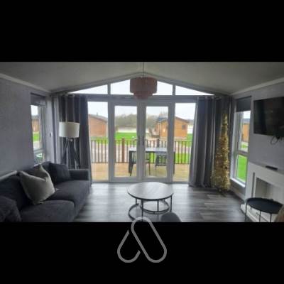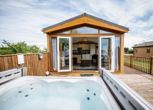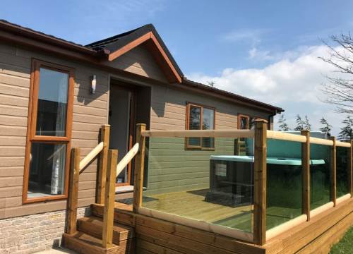 Lodge with luxury hot tub. 2 bedrooms (sleeps up to 4). Master double bedroom with ensuite shower. One twin bedroom & family bathroom.