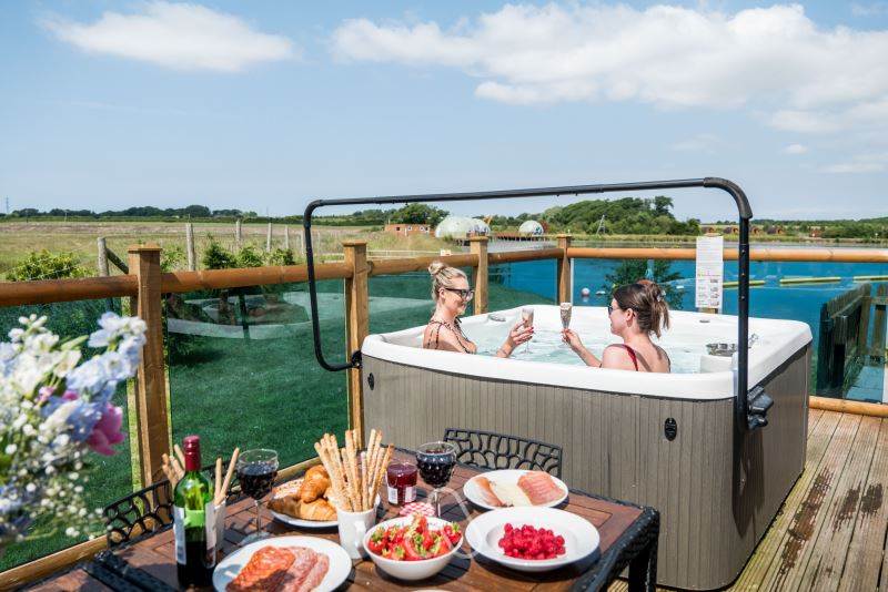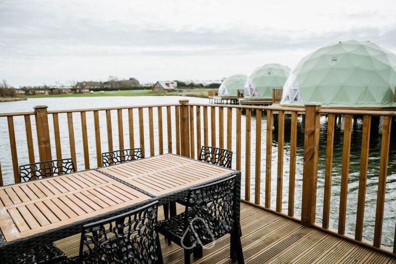 Deluxe Geodome - this Geodome 6 includes a private sheltered hot tub on the decking overlooking the beautiful lake. There is also a Smart TV in the hot tub area to enjoy while soaking your stresses away. Please note, the Smart TV requires a log in to your favourite streaming app (i.e. Netflix, Prime) and does not offer normal channels (satellite TV).