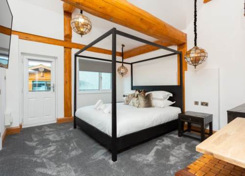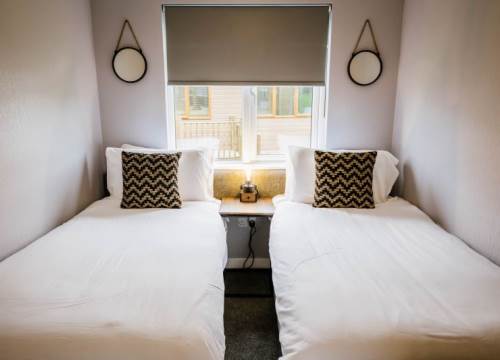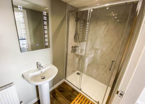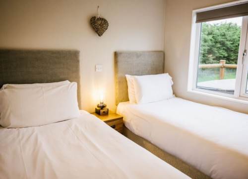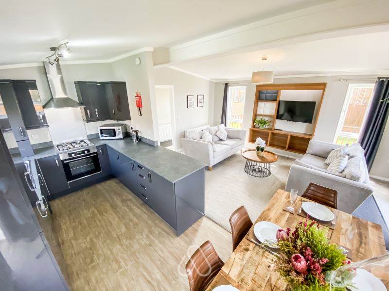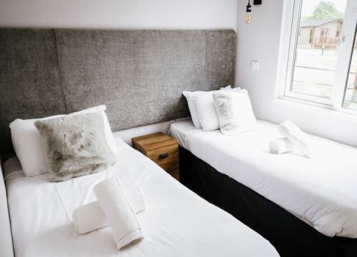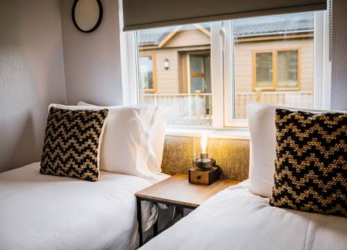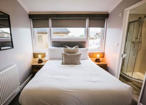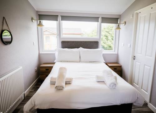 Our Woodland 4 lodges have 2 Bedrooms and sleep up to 4 - These lodges although slightly smaller than the 3 bedroomed lodges on site comes complete with the same contemporary interior design. The 2 bedrooms are generously sized and the master bedroom has it’s own ensuite and full sized family bathroom. With open-plan living space, which includes lounge, dining and kitchen area, there is plenty of room to enjoy time with the family. There is also a decked area for those hot summer nights and evenings in the hot tub