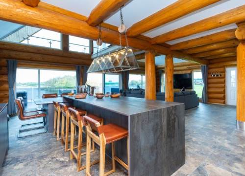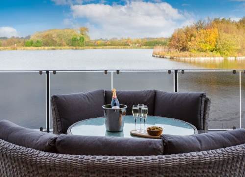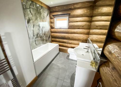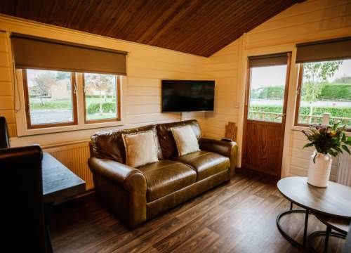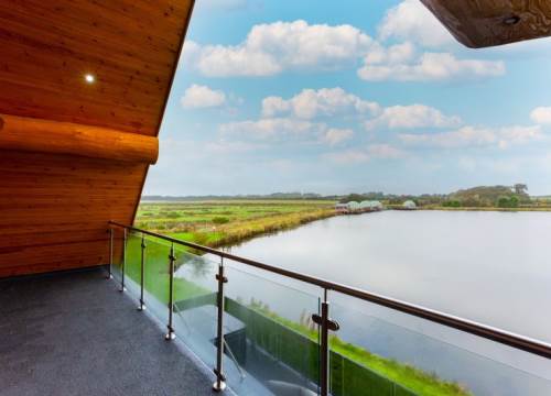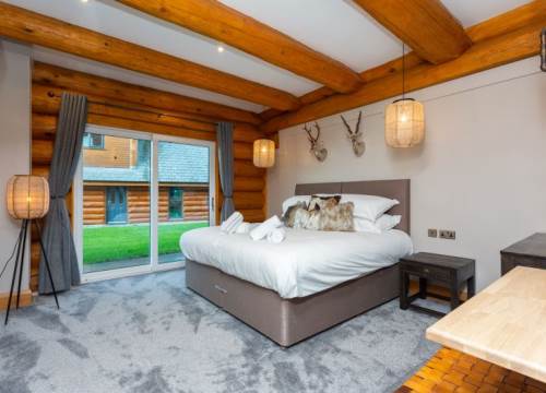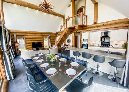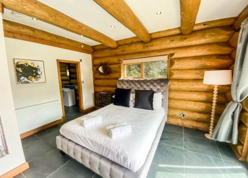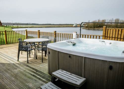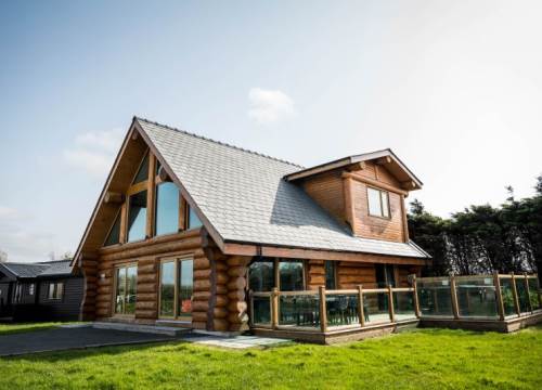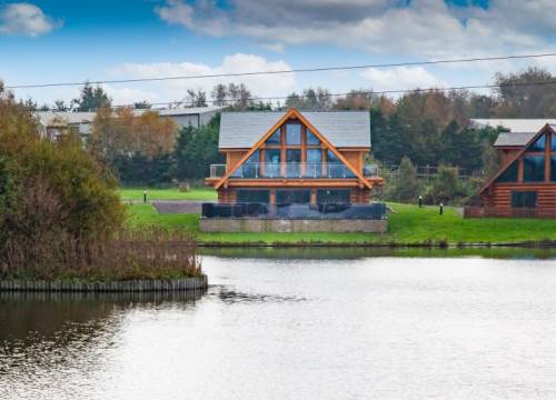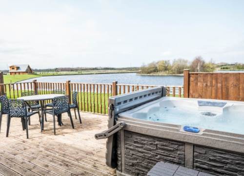 Luxurious lakeside log cabin with hot tub. Master king bedroom with ensuite. 2 further family rooms with ensuites. Sleeps up to 8 adults & 2 children.