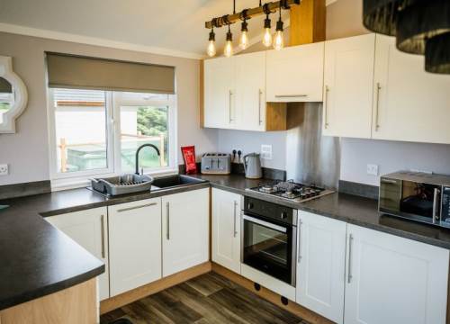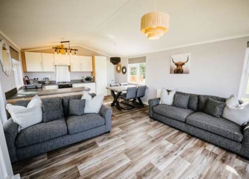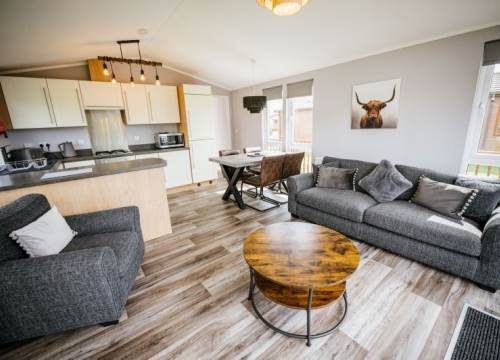 Our Woodland View 6 lodges have 3 bedrooms and sleeps up to 6. They all have a contemporary open-plan lounge with plenty of room to unwind along with the dining and kitchen areas give these lodges a light and spacious feel. Relax in style with 3 good sized bedrooms, an ensuite and full sized family bathroom. There is also wooden decking leading to Hot Tub.