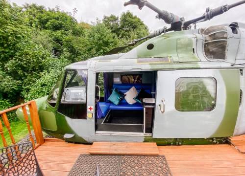 For something a little different, book a stay in the specially converted 1977 Westland Lynx XZ676 helicopter. Up to two adults and two children can be accommodated, with a kitchen area that has a microwave, a small sink and hot and cold running water. There's also a heater, Wi-Fi and a flat screen TV.
