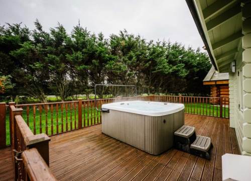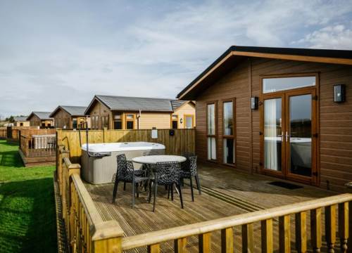Lodge with luxury hot tub. 3 bedrooms (sleeps up to 6). Master double bedroom with ensuite shower. Two twin bedrooms & family bathroom.