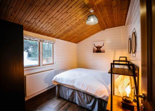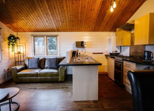 The Pawprint Chalet has 2 bedrooms and sleeps up to 4 - Our traditional pine log cabin has an open plan lounge, dining and kitchen area, a spacious hallway and 2 bedrooms. Its beautiful pine interior compliments the traditional pine log outer. There is also a decked area for those hot summer nights and evenings in the hot tub overlooking the lake at Ream Hills.