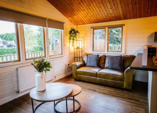 The Lake View 4 Lodges have 2 Bedrooms and sleeps up to 4 - These lodges although slightly smaller than the 3 bedroomed lodges on site comes complete with the same contemporary interior design. The 2 bedrooms are generously sized and the master bedroom has it’s own separate toilet and hand basin complete with large wardrobe. With a large open-plan living space, which includes lounge, dining and kitchen area, there is plenty of room to enjoy time with the family. There is also a decked area for those hot summer nights and evenings in the hot tub overlooking the lake at Ream Hills.