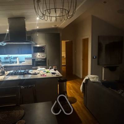 | Large open plan living area with high quality fully fitted kitchen. | |