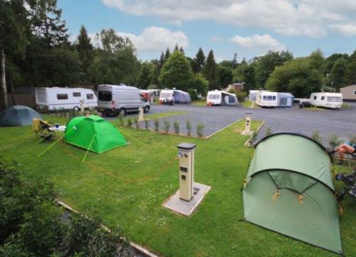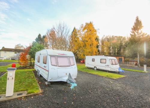 All of our touring pitches are fully serviced, all weather hard standing and with grey water disposal. Every pitch has access to a 16 amp bollard that supplies electric, fresh water and a T.V aerial connection point. The pitches are spacious so you can fit your tourer, awning and car. Our modern ECO friendly toilet and shower facilities include toilets, wash basins, showers, disabled area, baby changing facility, laundry and washing up area. The play area is next to the camping area which flat and has EHU facility. Complimentary Fishing on our stretch of the Teviot. Free WIFI.
