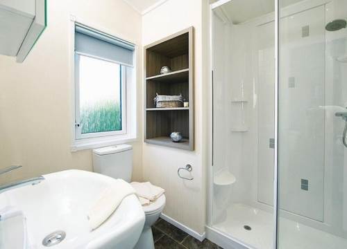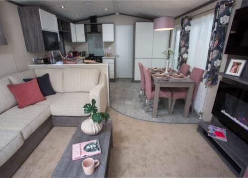 Brand new for 2018. Deluxe lodge style holiday home. One double with ensuite shower and two twin. Family bathroom with overhead shower. Open plan lounge / kitchen and dining area with doors leading to decking with garden furniture and outdoor hot tub.