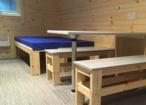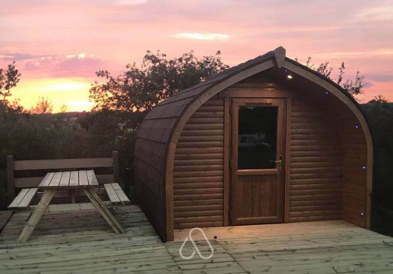 Glamping pod suitable for four, with one double pull out bed and two single beds.