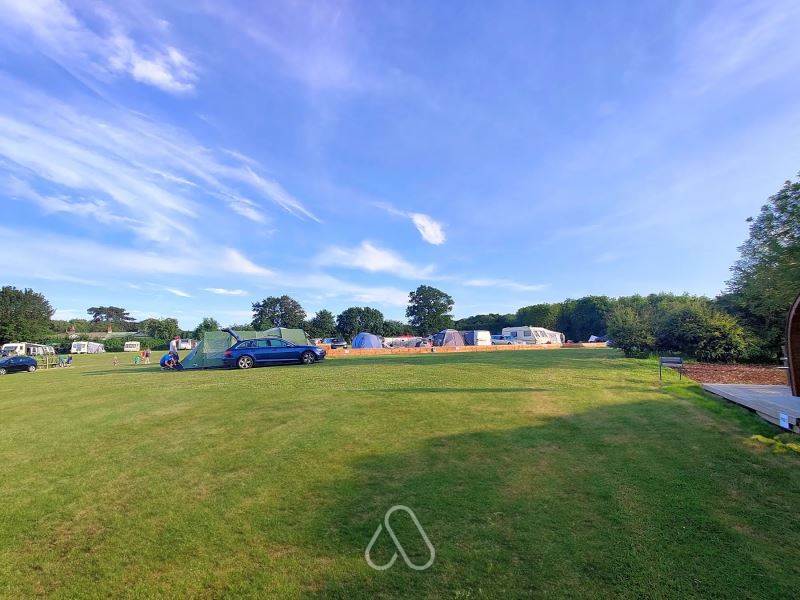 We have spacious pitches around the perimeter of our large main camping field and additional secluded alcove pitches in our wooded area. We leave the large meadow in the middle of the camping field empty so there is room for children and families to relax and play. There is an area of woodland with little dens for the children to explore and a woodland walk suitable for dogs.