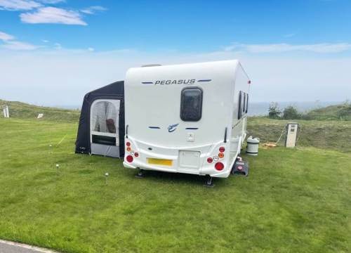 A superb cliff top location with uninterrupted sea views and direct access to the beach. Our touring park is adults only. All pitches have electric and TV hook-ups and free access to our new and spacious heated shower block, offering a constant supply of hot water.