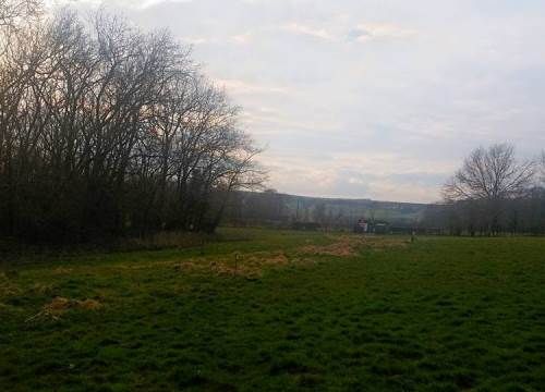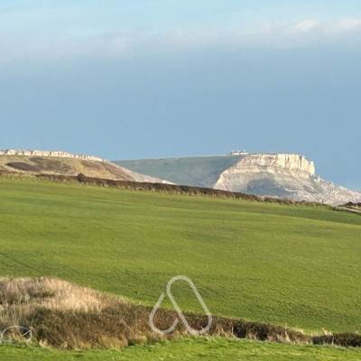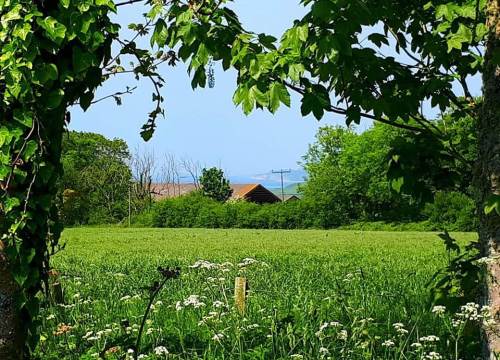 Next to the track running down our main field adjacent to the field next to our site and overlooking beautiful views of fields, hills and cliffs.