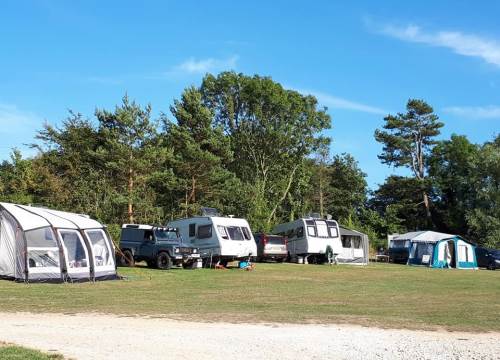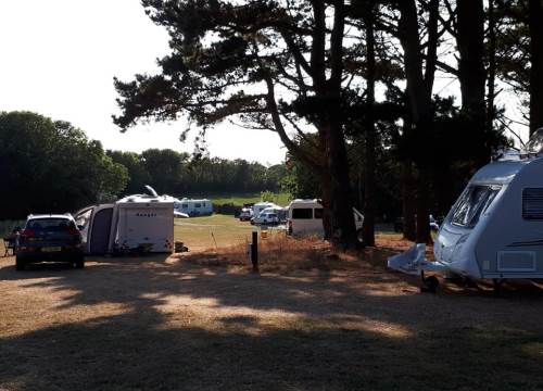 Grass caravan pitches 23–27 are in a quiet area next to a small wood at the very bottom of our site overlooking beautiful views of fields, hills and cliffs. Watch the wildlife and the sun setting over the cliffs from your pitch.