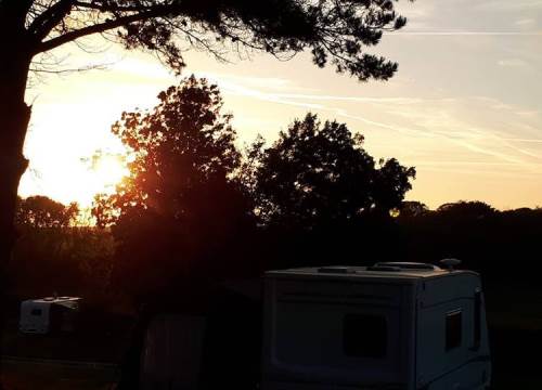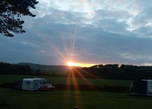 The Ring of trees is a well maintained copse of pine trees in the middle of our main field overlooking fields, hills and cliffs with the spacious pitches 18 – 22 positioned around the ring. Depending on how you pitch you may need to chock up slightly on some of these pitches to level. Watch the sun setting over the cliffs from your pitch.